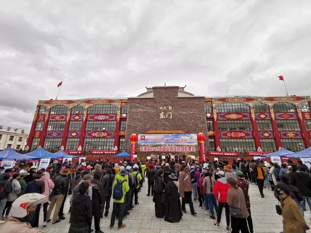 石渠县2019年就业扶贫现场招聘会是该县首次举办面向贫困户的专场招聘会,共有38家企业提供2000多个就业岗位。为助力对口帮扶县劳动力就业转移,四川交通技师学院主动为石渠县人社局联系用工企业,引入安徽芜湖德力西电器、飞科电器等22家与学院有长期合作的企业,为参加招聘会的藏区群众提供了924个就业岗位。22家企业用工学历起点较低,工资起薪均在4000元至7000元每月不等,现场参加人员报名踊跃。四川交通技师学院受合作企业委托,为参加招聘会人员提供现场咨询和报名登记。