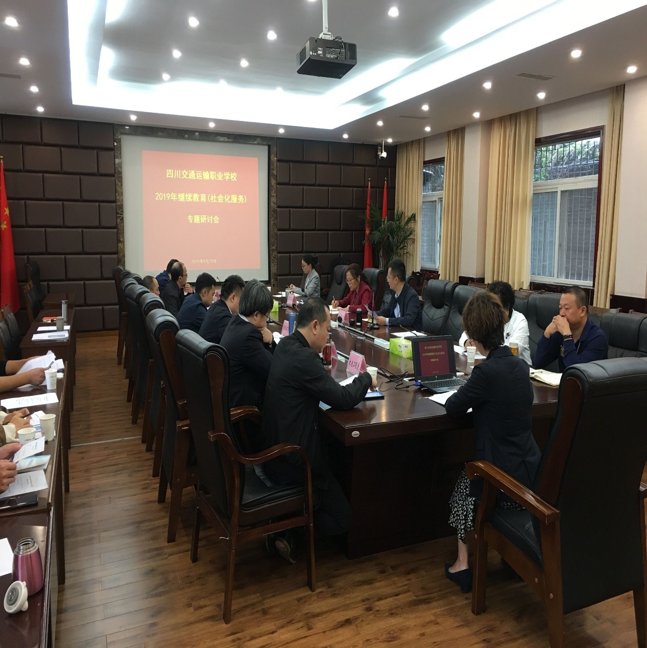 2019年9月19号,2019-2020学年第一学期继续教育社会化服务专题研讨会在温江校区综合楼一楼会议室召开。会议由副校长刘新江主持,校长王永莲、副校长龚文安出席会议,各系(部)负责人、继续教育部相关干事参加会议。