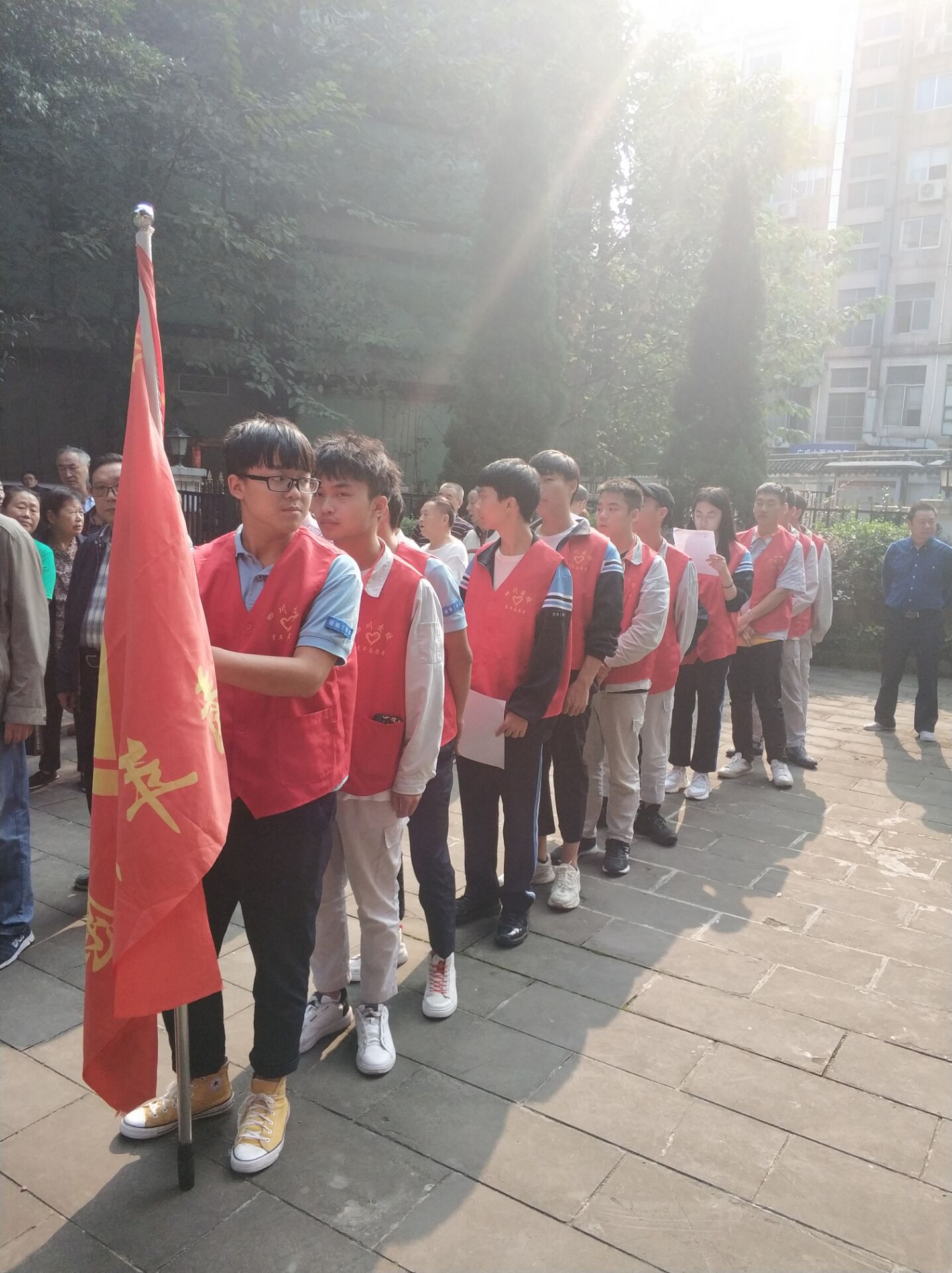 今天我校道桥系的青年志愿者们去武侯区李家钰将军墓碑参加志愿活动,青年志愿者穿着统一的红色志愿服,整齐划一。演奏国歌,献上了花篮,对革命烈士进行了默哀,集体歌唱“我和我的祖国”。参加了社区组织的中、小学及各社区青年志愿者和社区各单位一同庆祝“中华人民共和国七十周年”的征文演讲比赛,在这次演讲中获得一个二等奖,两个三等奖,三个奖项,最后我校志愿者集体拍照留念。