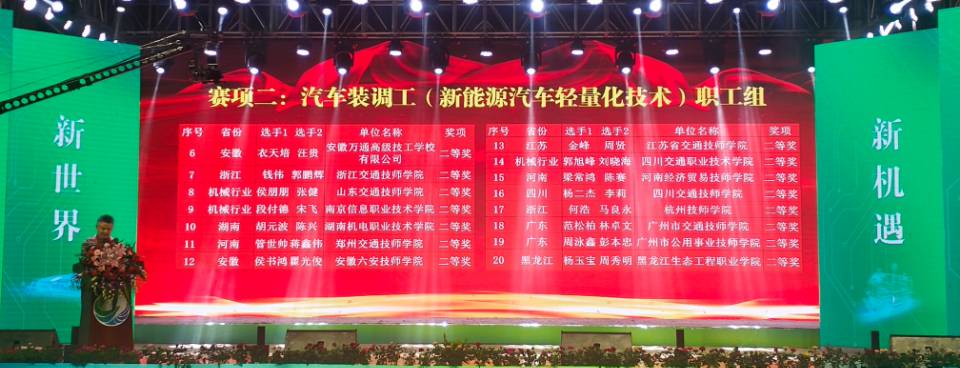 2020年全国行业职业技能竞赛——第二届全国新能源汽车关键技术技能大赛在河南省新乡市举行,四川交通技师学院汽车工程系两位老师杨二杰、李莉参加了“新能源汽车轻量化技术赛项”,并荣获二等奖。