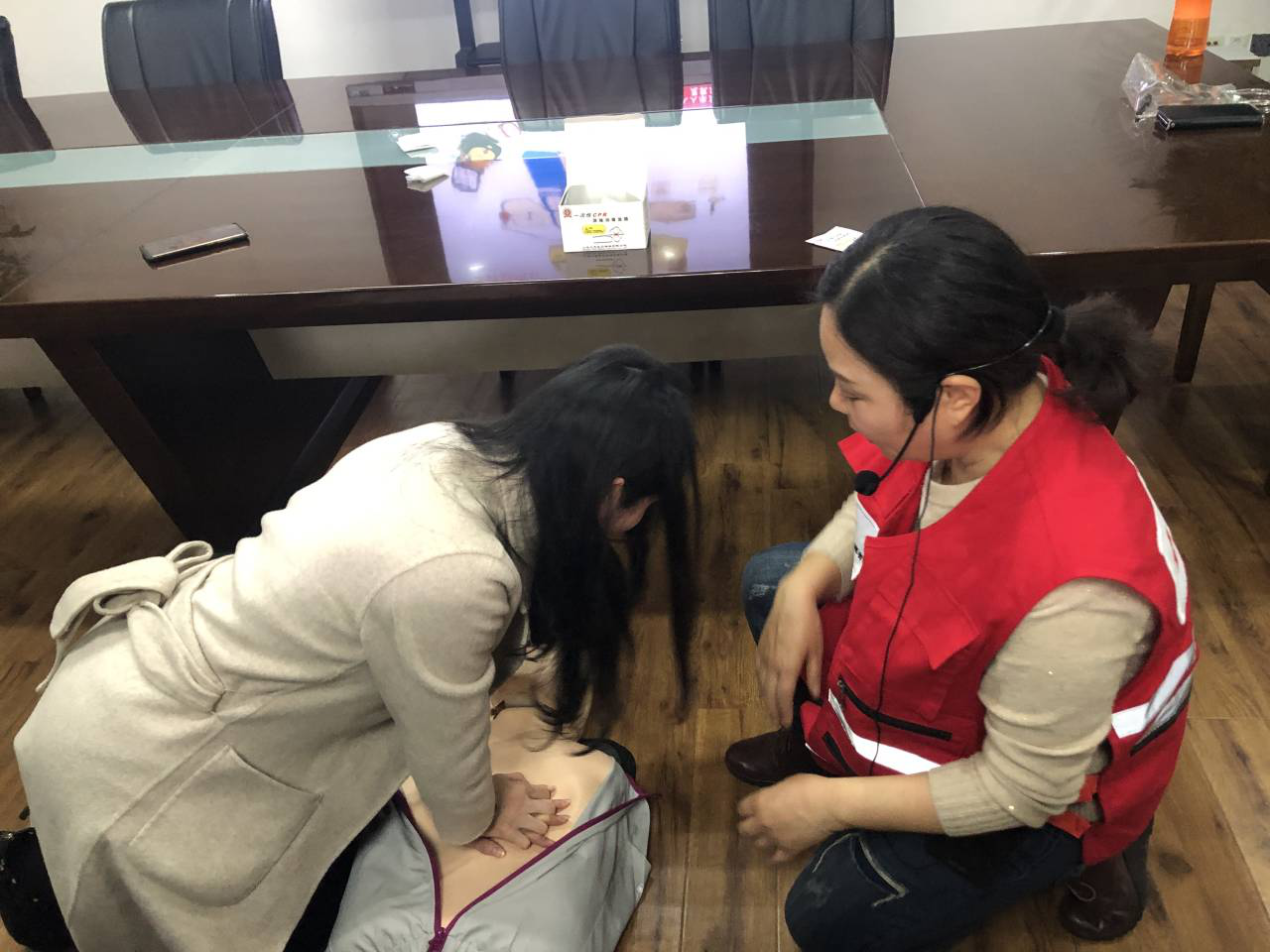 区红十字会专业老师分“心肺复苏技能”和“AED的使用”两部分内容讲解了心肺复苏急救法和红十字运动。在传播急救知识的同时,弘扬了“人道、博爱、奉献”的红十字精神。