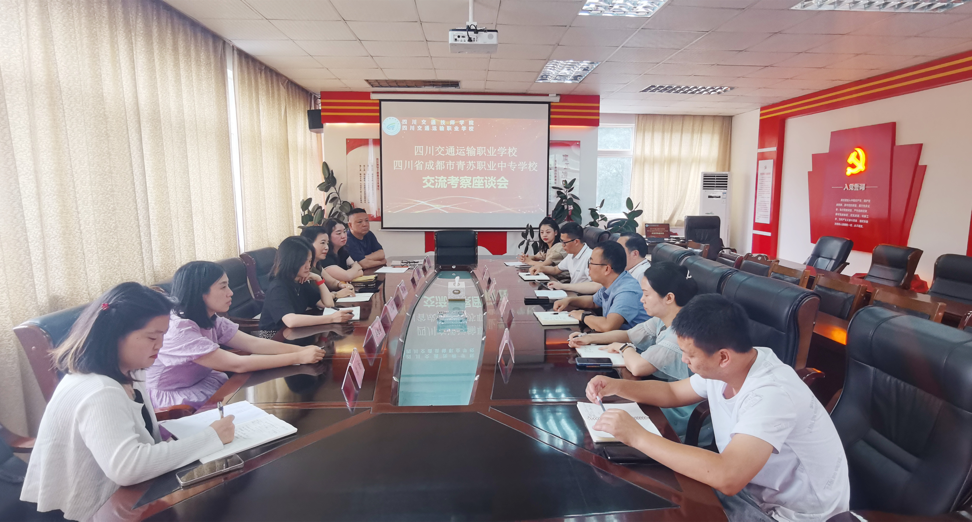 近日,四川省成都市青苏职业中专学校集群主任王琼一行6人就“三名工程”建设到我校考察调研,学校机电工程系主任夏宇阳、书记申立静、副主任雍朝康及专业骨干教师参加座谈。