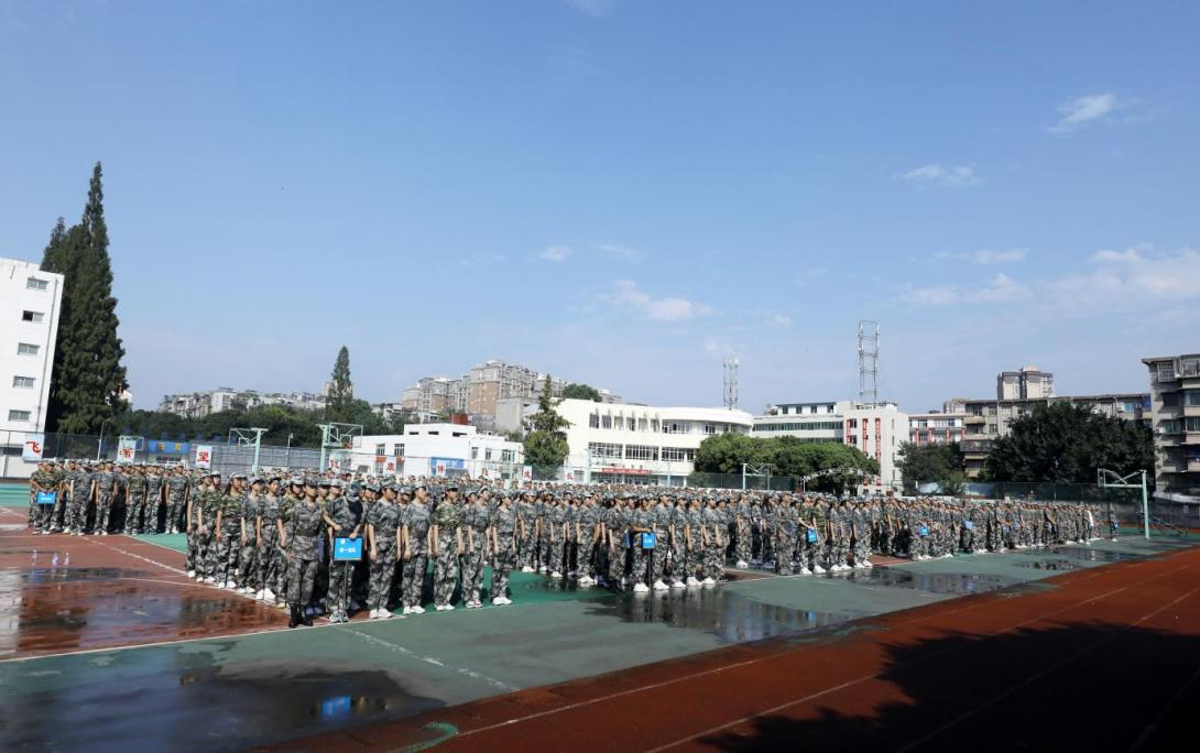 8月21日上午9点30分,学校分校区召开2023年新生军训动员大会。学校党委副书记、纪委书记、副校长杨鹏辉出席大会并作动员讲话。成都市温江区人民武装部代表简光军同志、学校各系党支部书记及有关部门负责人参加大会。2023级全体新生列队参训。