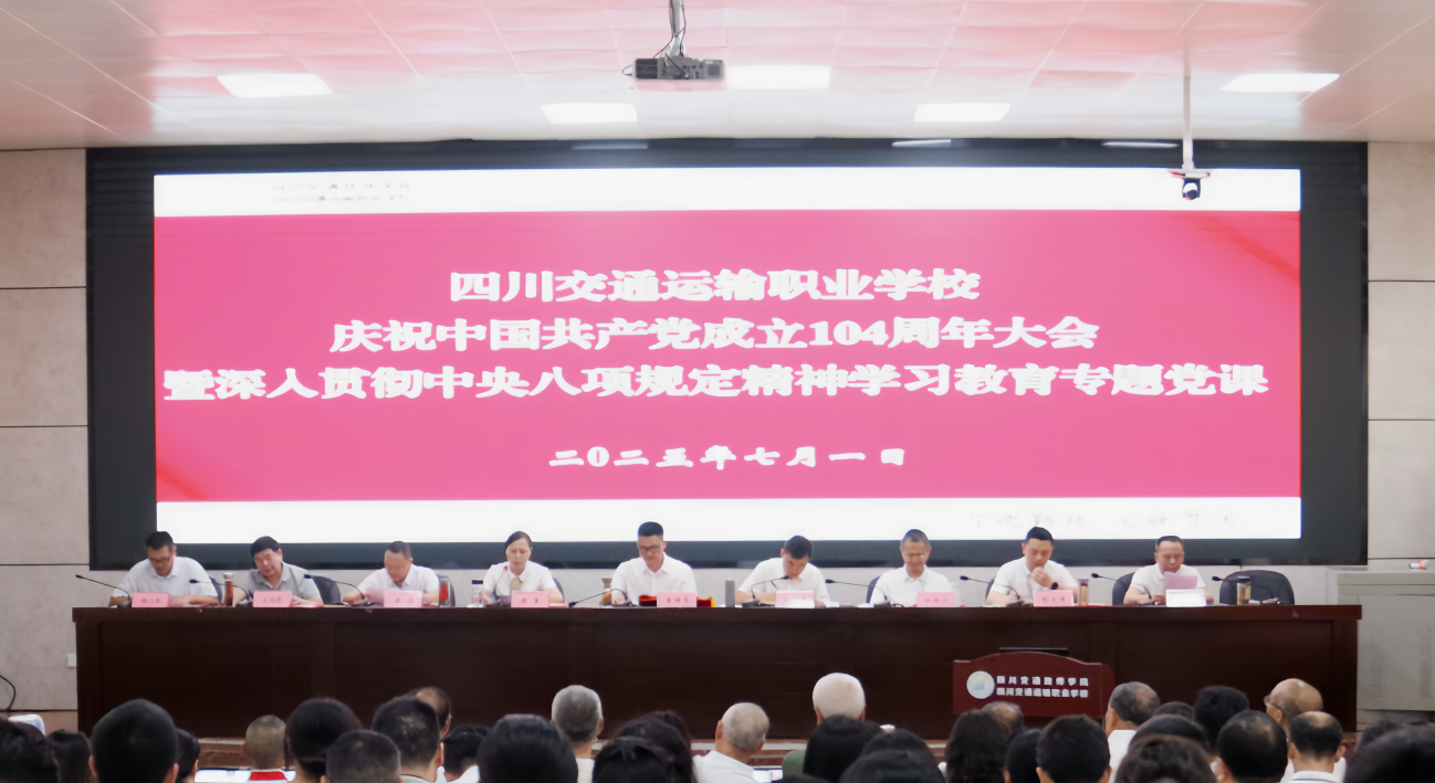 7月1日,学校举行庆祝中国共产党成立104周年大会,为光荣在党50年老党员代表颁发纪念章,通报党员、党务工作者和基层党组织受到厅直机关党委、交职学院党委表彰情况,为学校2024—2025年度优秀共产党员、优秀党务工作者和先进基层党组织颁发奖牌和证书。